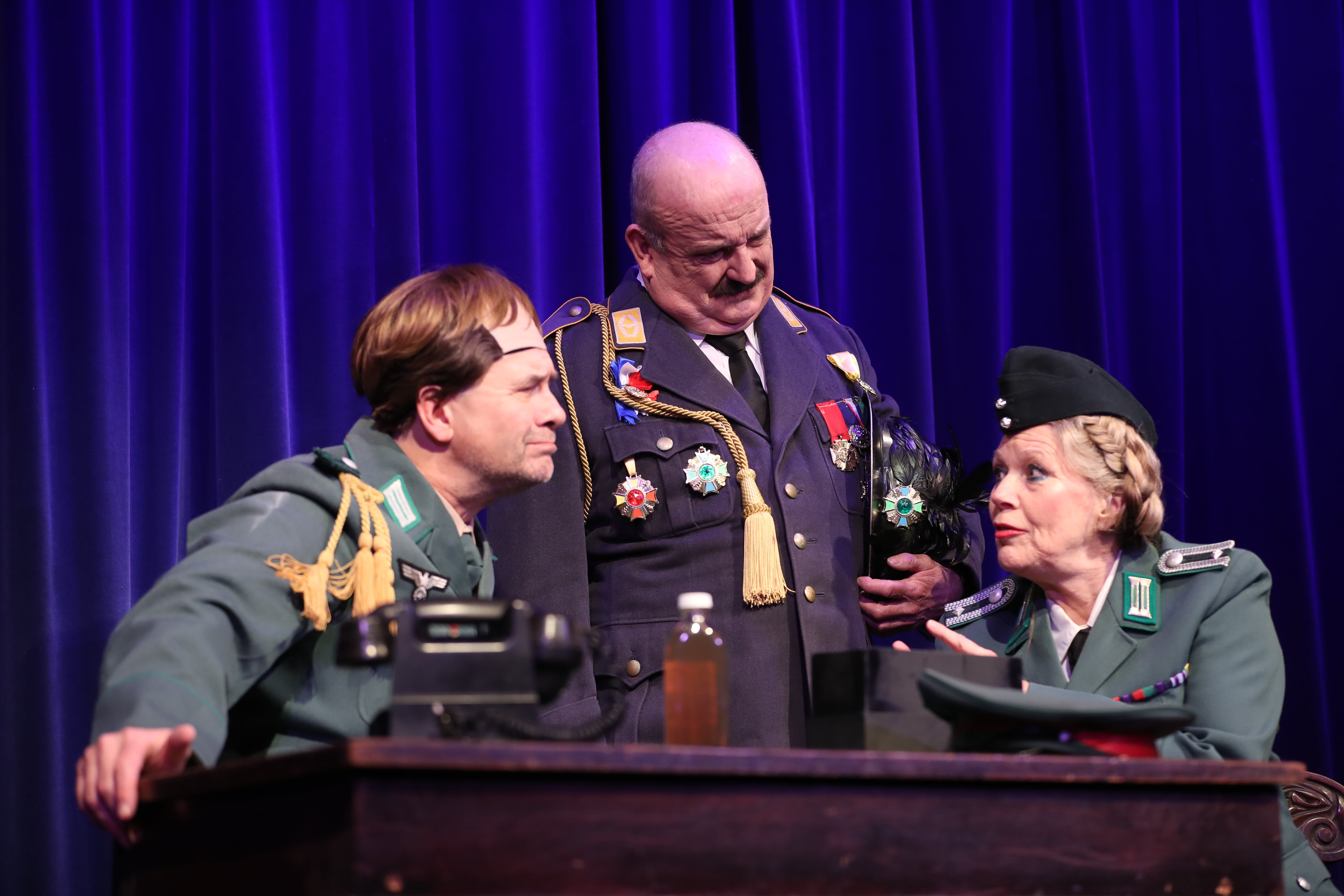 It was delightful to find a great mix of Italian and German military men. David Impiazzi (as Bertorelli), Paul Allum (Col von Strohm), Steve Hart (as General von Schmelling) were all very good, with marvellous accents and amply supplied with cheese to plug their ears as Edith entertained. Brezetta Thonger made a fine Helga, and flirted well with Herr Flick (David Gow) who impressed with his violin playing and his very odd attempt at a tango.