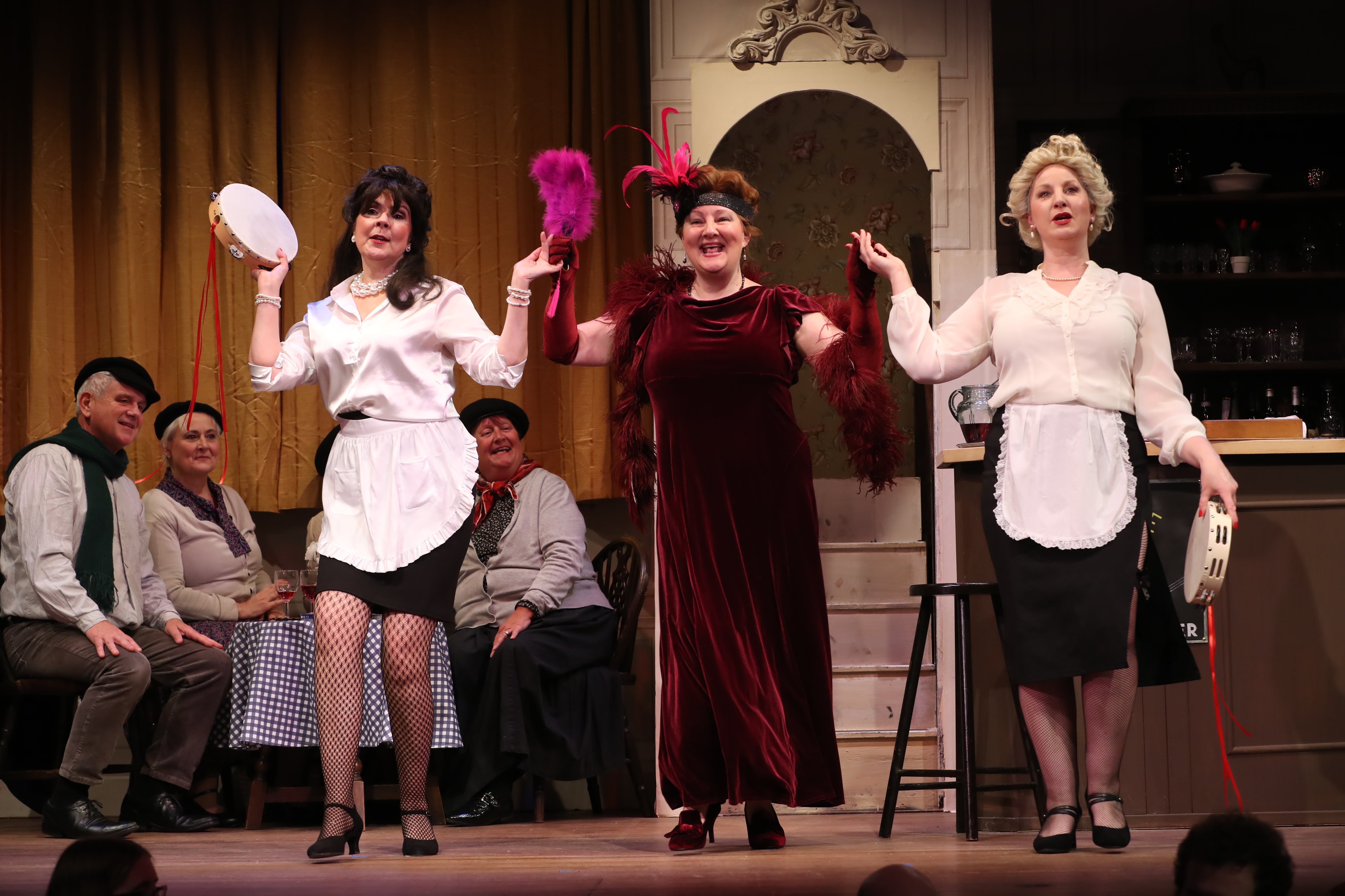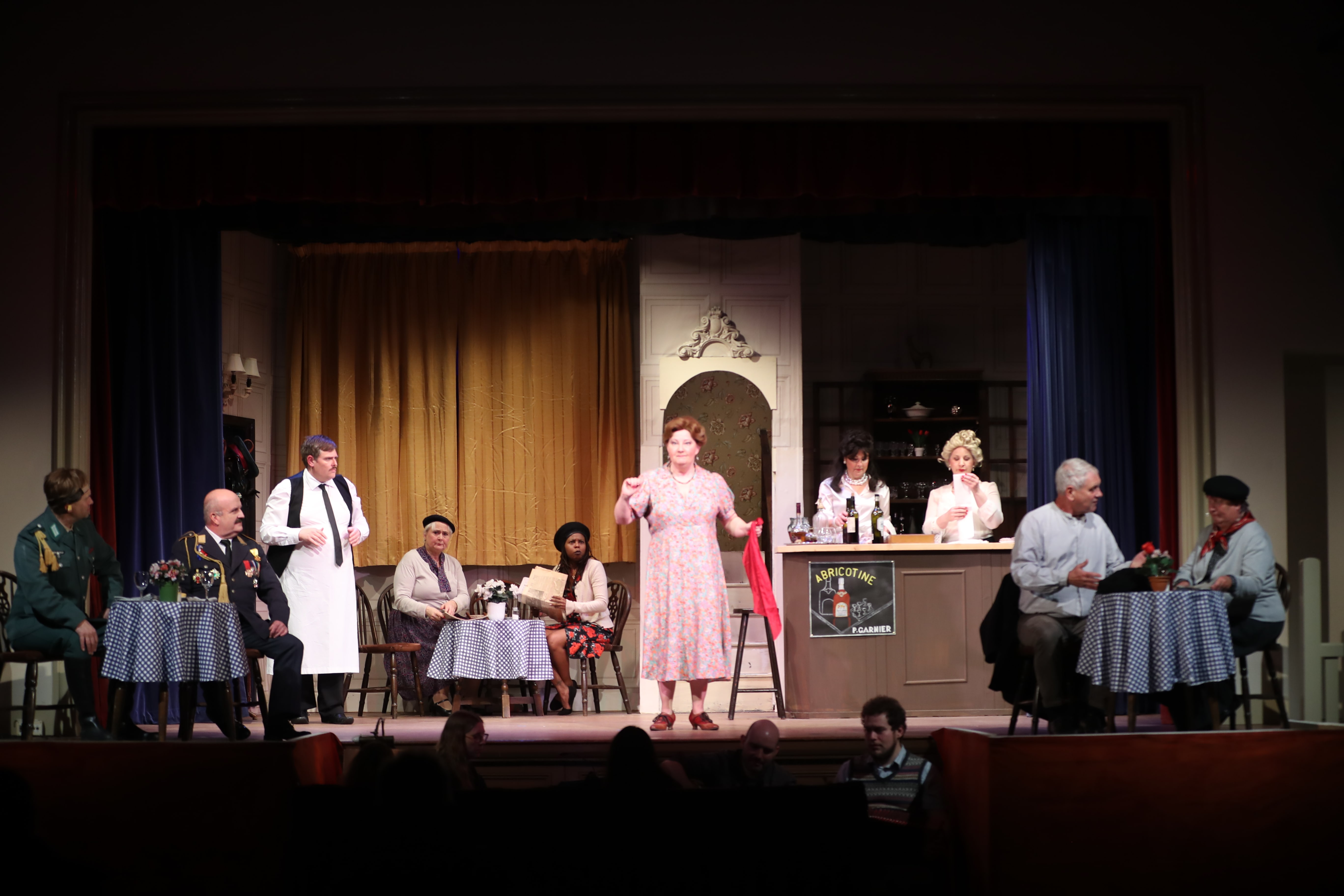 Buff Cooper is to be congratulated for, above all else, having the courage to put this production on, with its huge and fine cast, tremendous number of scenes, and rapid tempo. In his Director’s Note, he thanks his Production Manager Laura Musco (Michelle from the Resistance incidentally), who ‘kept all those many plates from crashing to the floor’. The whole team must be congratulated also on their amazing accents, their energy and their comic timing.