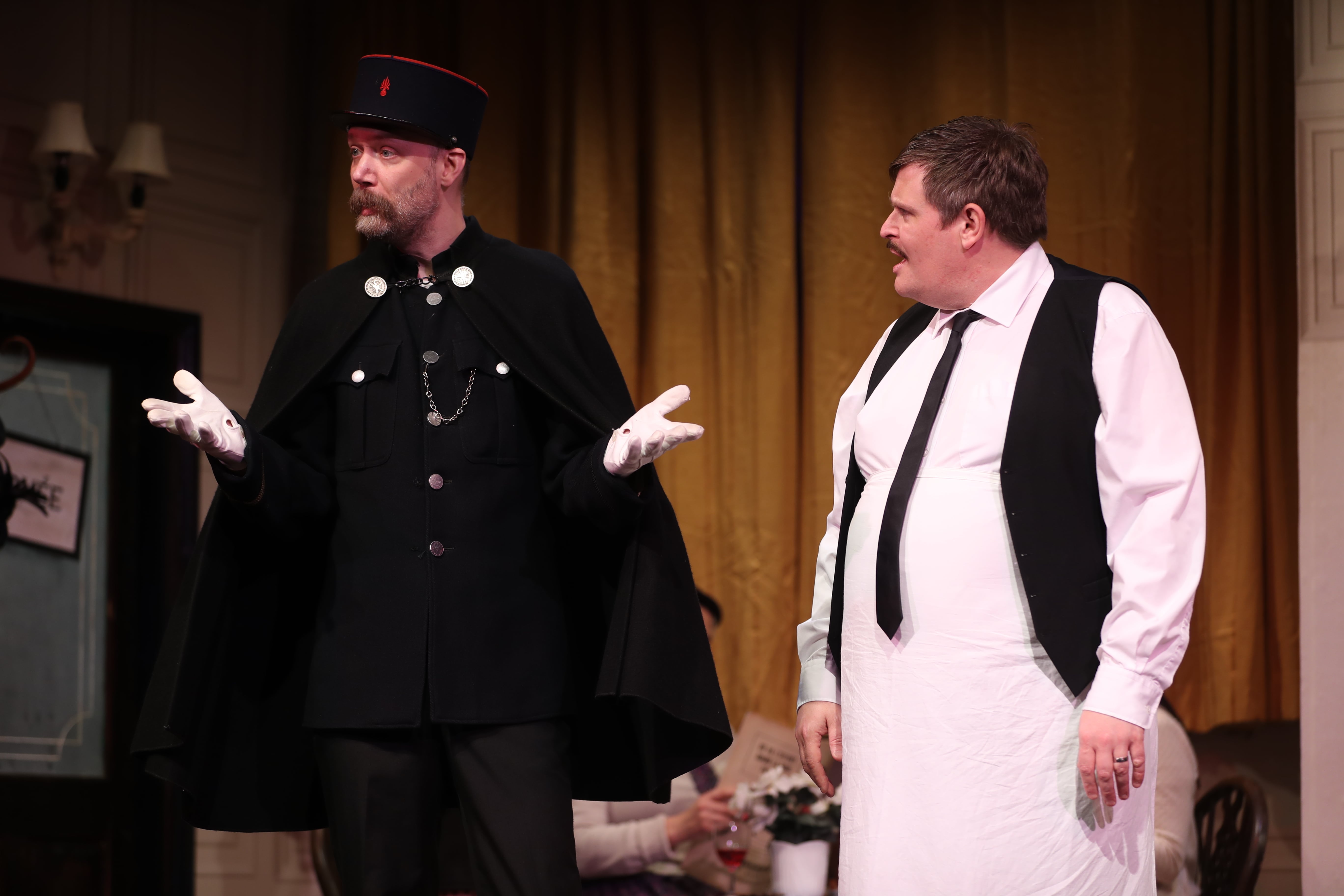 Michelle from the Resistance kept popping up of course in various disguises – at one time she was an astonishingly flamboyantly attired lady of the night! Laura Musco enjoyed herself in this role. Trevor Woods was a suitably dim M. Leclerc, interrupting at all the most inconvenient moments.