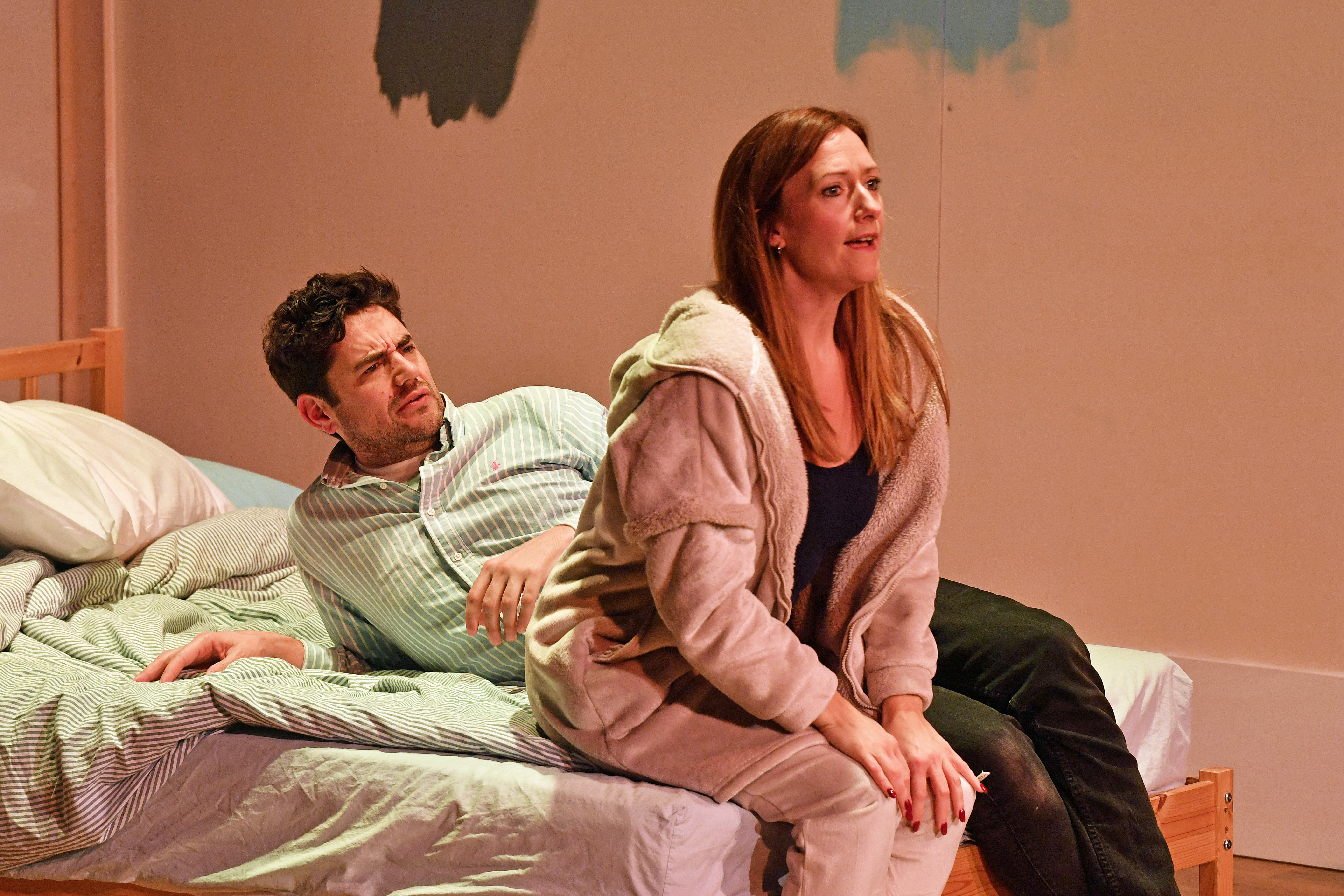 We moved back to Nick, of the bad back. In still trying to retrieve his book, he fell on the floor. More moans and groans, and a scene which seemed to go on forever as he tried to get himself back into bed. Too much time was spent on milking the humour of this predicament, Mr Ayckbourn!