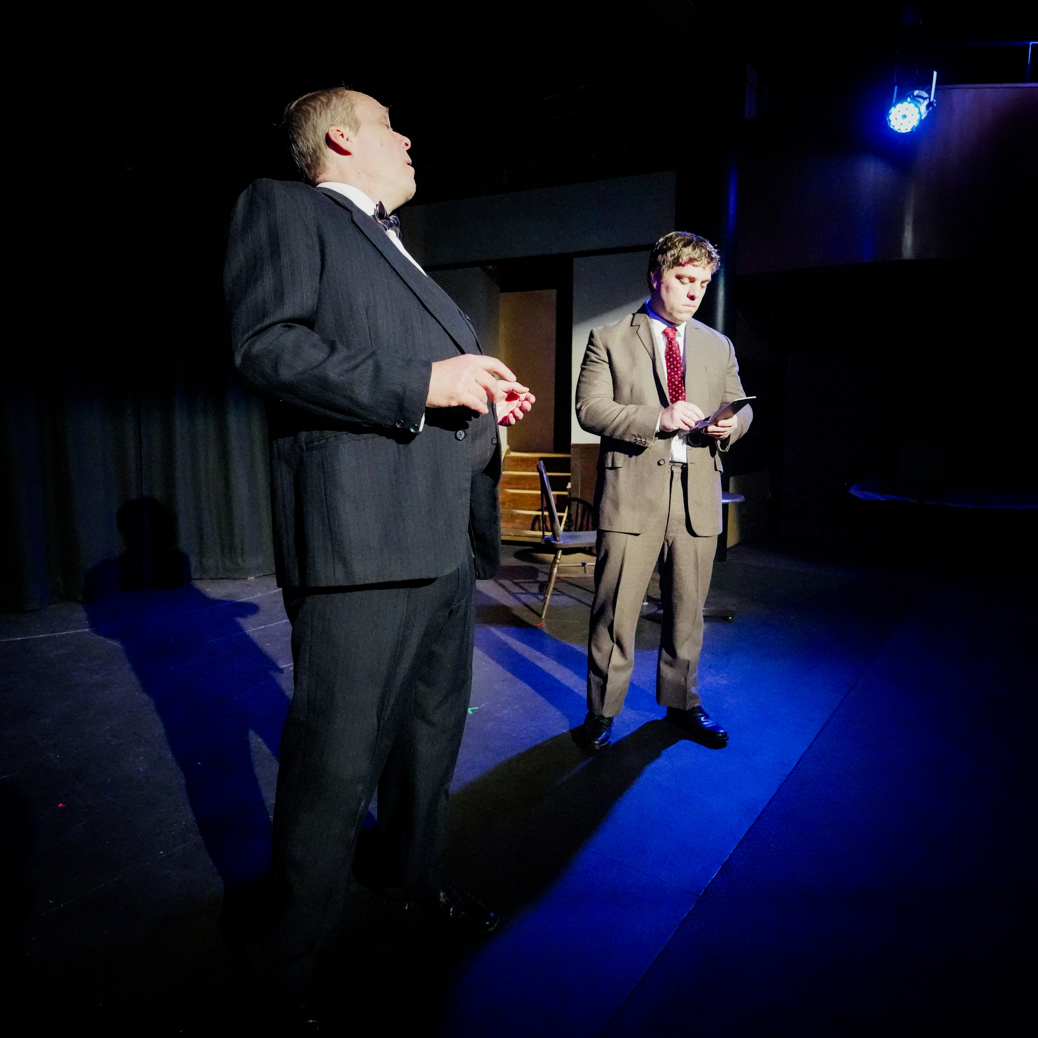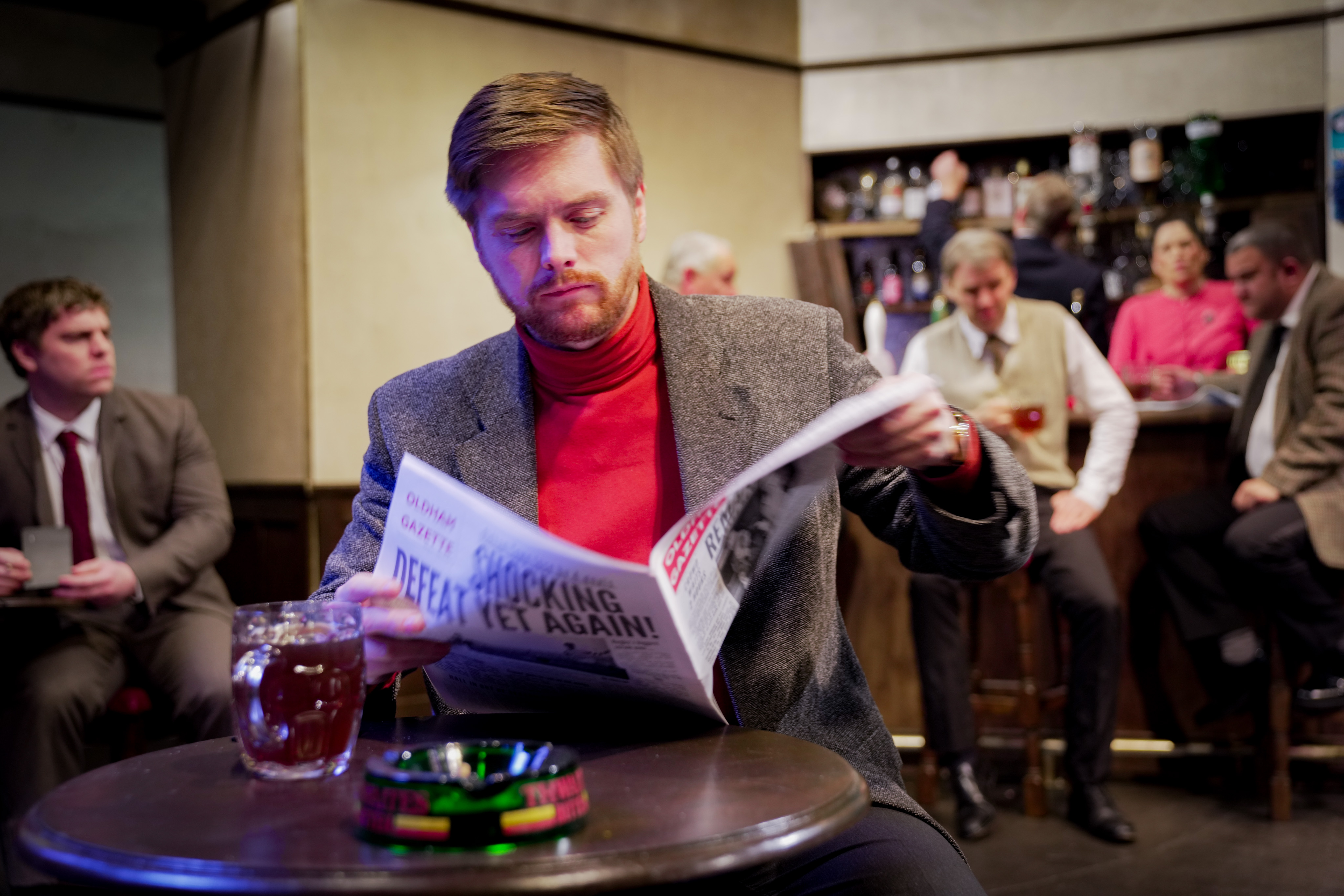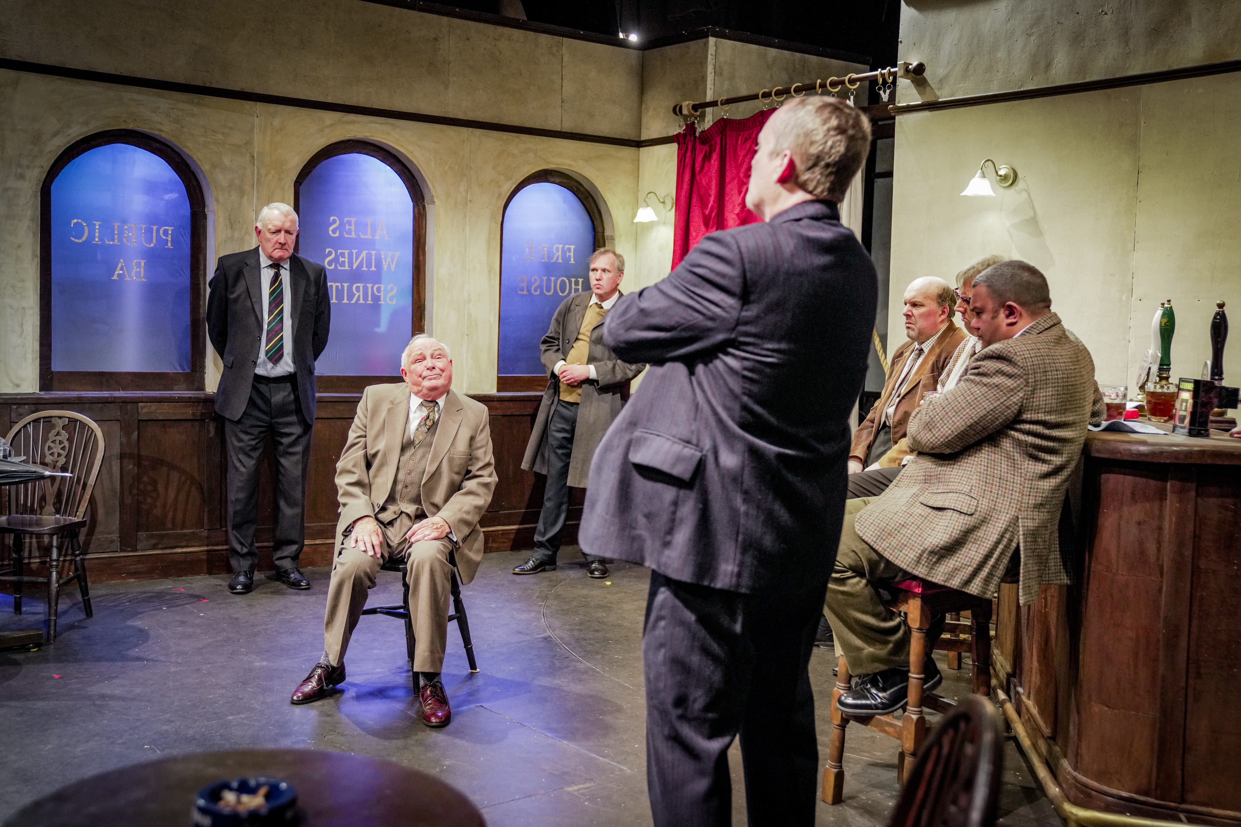 A young enthusiastic journalist Clegg (Joe Hall) tries to engage Harry in conversation about his views on the abolition of hanging. ‘No comment’ from Harry for quite a while, but then his ego cannot resist, and the threat by Clegg to go to rival Pierrepoint instead nails it, and he invites Clegg upstairs for an interview. An ominous atmosphere is building up. The very strong cast enjoy building up the rich characters, the humour bubbles away: ‘The guillotine’s messy, - and French.’ The trio of regulars are great, Jez Gooding as Charlie, always repeating what’s been said into the ear of bumbling, hard of hearing Arthur, played by Oli Bruce, and Matthew Lacey as the old soak Bill, always up for a free pint if able to scrounge one. Jonathan Arundel was the slightly worrying tight-lipped Inspector Fry, was he on duty? He certainly quaffed a few pints.