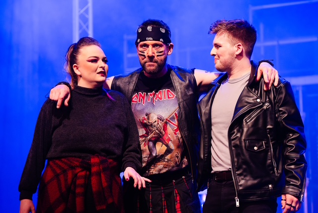 Penny Thatcher was a very intimidating, sinister Killer Queen indeed. ‘Don’t Stop Me Now’ and ‘Another One Bites the Dust’ as well as ‘Killer Queen’ were performed with great menace, panache and style. Her main henchman, Khashoggi, was a splendid character, wickedly threatening, strutting about the stage in his long black coat and shades, the epitome of evil. But, of course, as weak as a mouse when he got his comeuppance. Dan Evans made this part his own, bringing out all the delightful humour in his role.